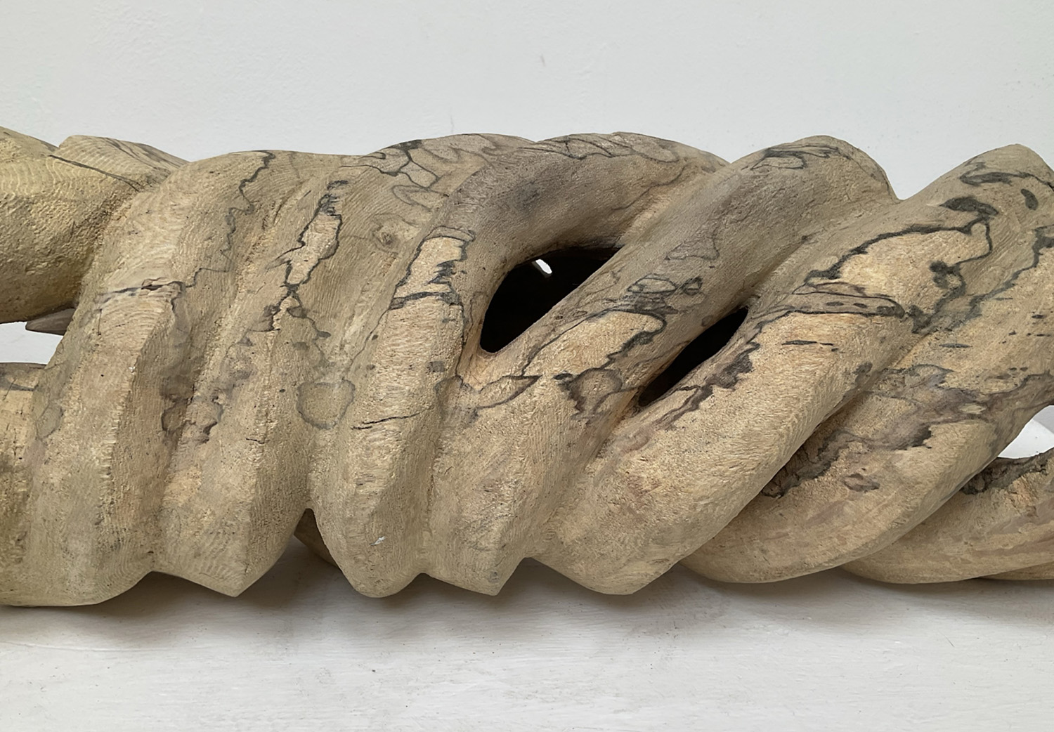 Sculpture Sculpture Frayed Spiral. Hand carved Ash. 2026 Willow Form. Hand carved 2026. ‘Ivy Curve’ 2017 with ‘Crouched Willow’ 2025 The Mycelial Cord, Hand carved willow. 2024 ‘How Dreams Connect’ Upcycled wood. 2023 Form Within, in situ hand carved Scots Pine. 2020 Horizontal carving. Boxwood 2023 Related